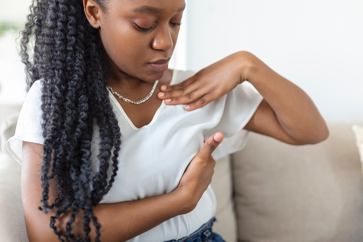 - Skin that looks different (dimpled, puckered, red, or scaly)
